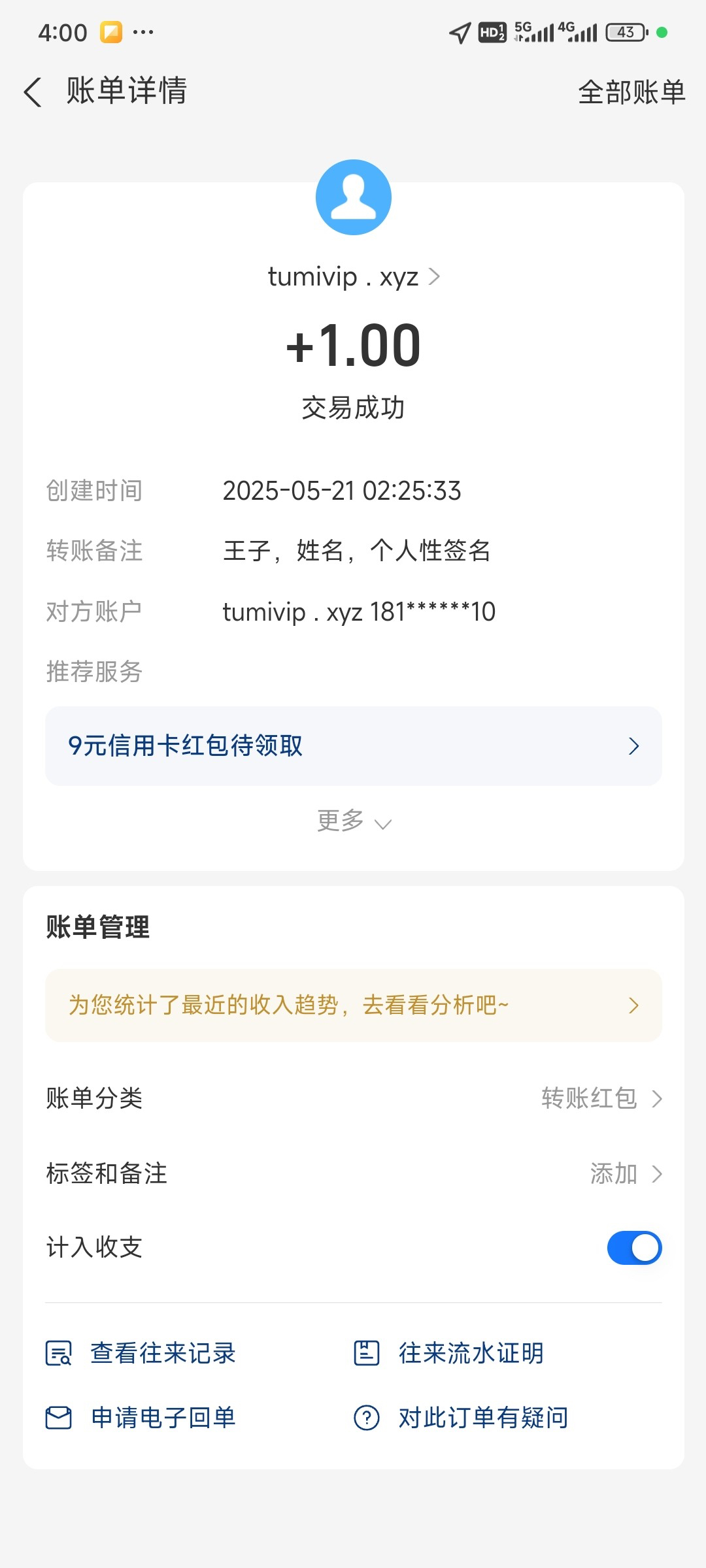 送了58 出了100 支付宝截图找客服