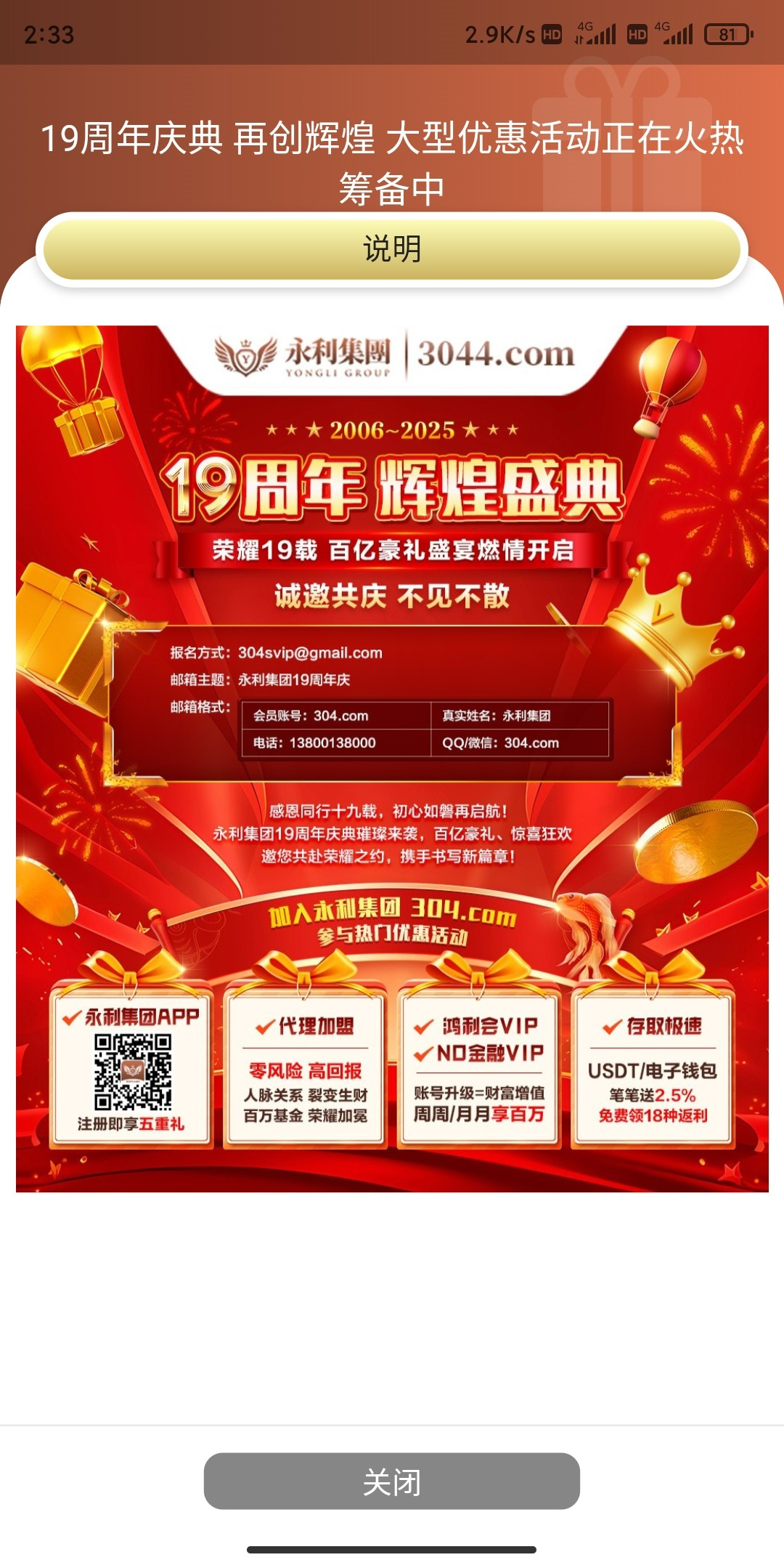 跟3003一样也是周年庆典先去发邮件报名到时候都会送彩金