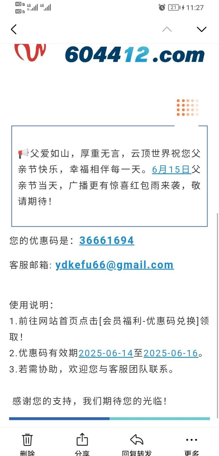 收到云顶父亲节优惠码6.66